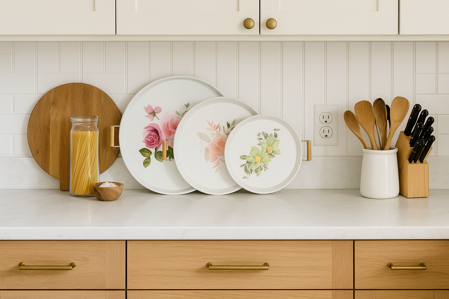 Sunumlarınızda rahatlıkla kullanabileceğiniz suya dayanıklı ahşap kulplu metal tepsi. İster kahve sunumlarınızda ister dekorasyon olarak rahatlıkla kullanabileceğiniz 37 cm tepsi. Ahşap kulpları sayesinde kolayca taşınabilir ve dekore edilebilir.